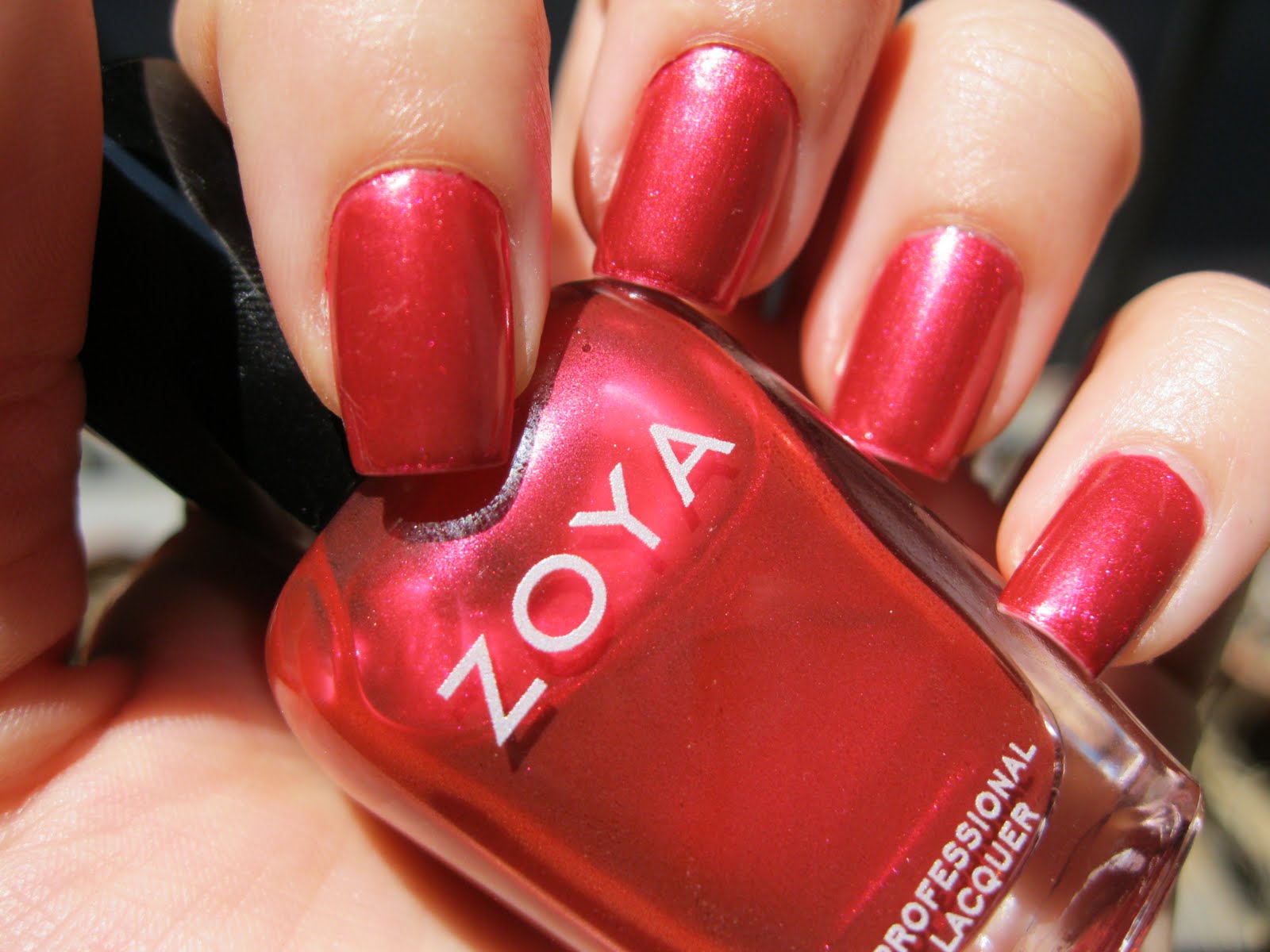 The last Buffy the Vampire Slayer mani I have for you is Zoya Faith. Zoya Faith is a metallic strawberry red with a subtle magenta duo chrome. In comparison to Zoya Buffy and Zoya Willow, I found the formula to be a little more runny and I had a slight problem with flooding. I am wearing three coats here, though two would have sufficed. Compared to the other to BTVS manis, this one is certainly the most vampy and I assumed it would be my favorite of the three. As it turns out I am more of a Buffy girl, both in terms of the character and the polish. Zoya Faith is lovely, but I don't think I love it. I was expecting the red to be deeper, or for the pink duo chrome to be more pronounced. Overall, this is not the most unique shade but is still a fun, wearable red.